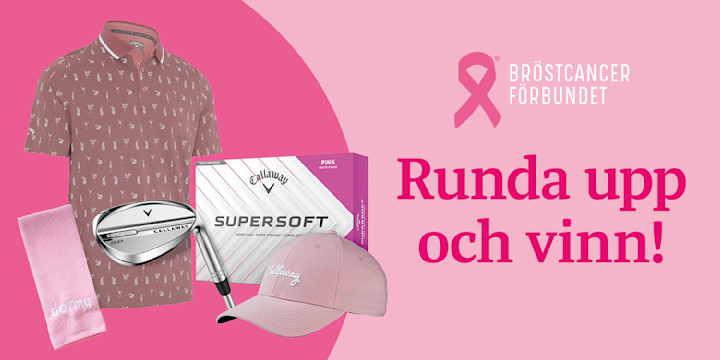 Under oktober månad tar vi ett krafttag och stöttar Bröstcancerförbundet i kampen mot bröstcancer. Om du köper artikeln "Runda upp" så skänker du 50kr oavkortat till Bröstcancerförbundet. Alla som rundar upp minst 50 kr under oktober är med i utlottningen av ett presentkort på 10 000 kr på Callawayprodukter.