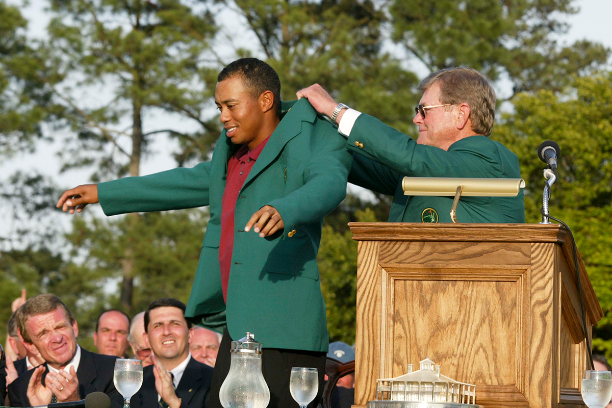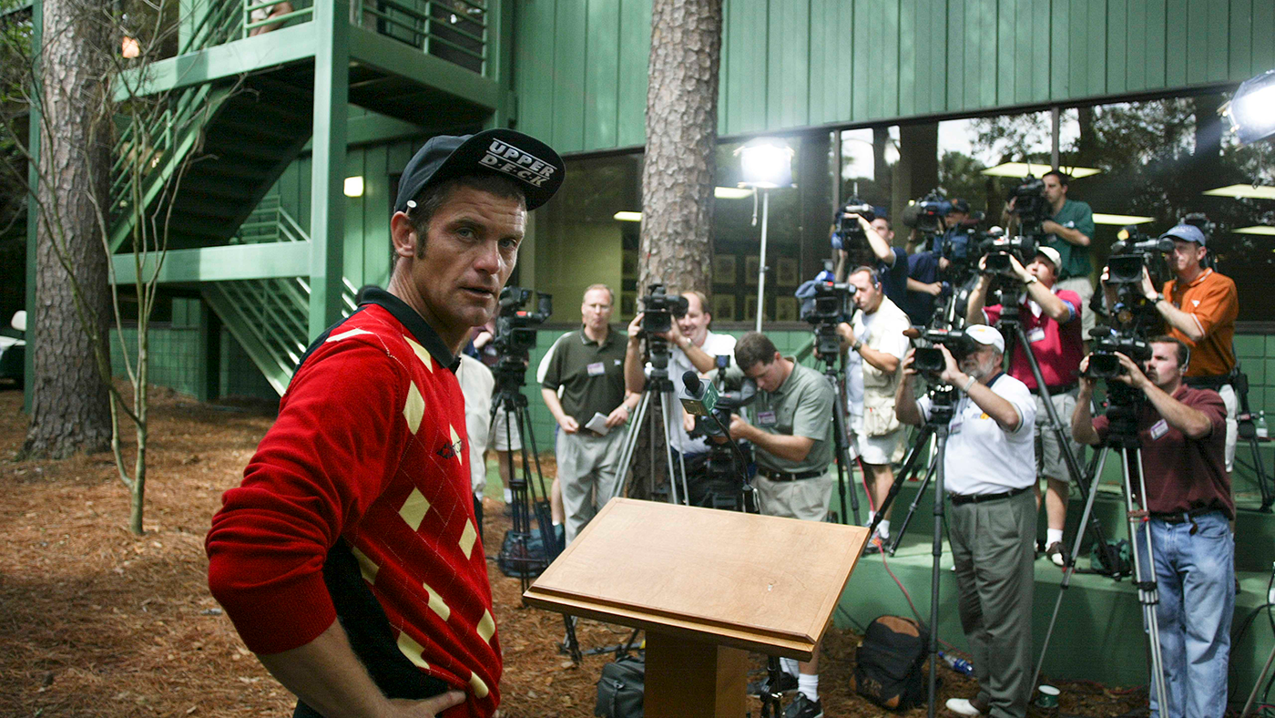 Jo, redan första året 1997 morgonen efter Tiger Woods söndagsuppvisning. Från samma tees och med samma flaggplaceringar. Ni kanske har sett den stora resultattavlan till höger på första hålet? Christers drive gick över tavlan och landade utom synhåll. Där väntade överraskningen – det amerikanska tv-bolag som sände tävlingen körde morgonstudio i direktsändning och en ljudtekniker pekade glatt på golfbollen några meter från studion. Christer lyckades knacka ut bollen på fairway utan att själv hamna i bild.